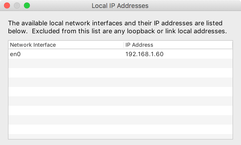 In order to set up our mobile device, we first need to know the local IP address of our computer. In Charles, select Help > Local IP Address to display this information. Your local IP address can also be found under Apple > System Preferences… > Network.