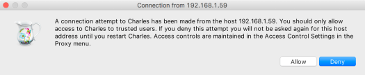 This is to allow the device permission to utilize Charles on our computer as a proxy. Click Allow.